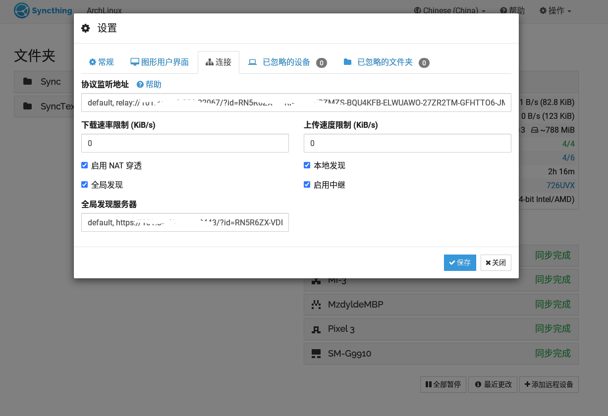 对了,需要公网访问记得更改GUI 监听地址为0.0.0.0:8384