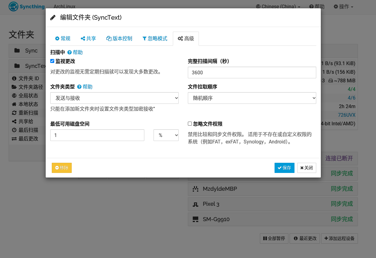 Syncthing 具有极高的易用性,一般可直接开箱试用,但还是有几点推荐修改配置一下