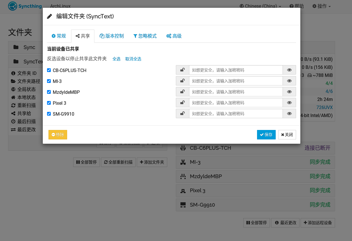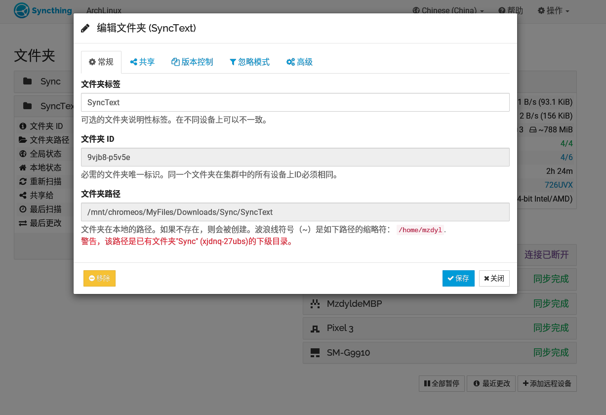 当设备添加完成,即可开始同步文件夹了,在其中一台设备新建 / 添加其它文件夹
