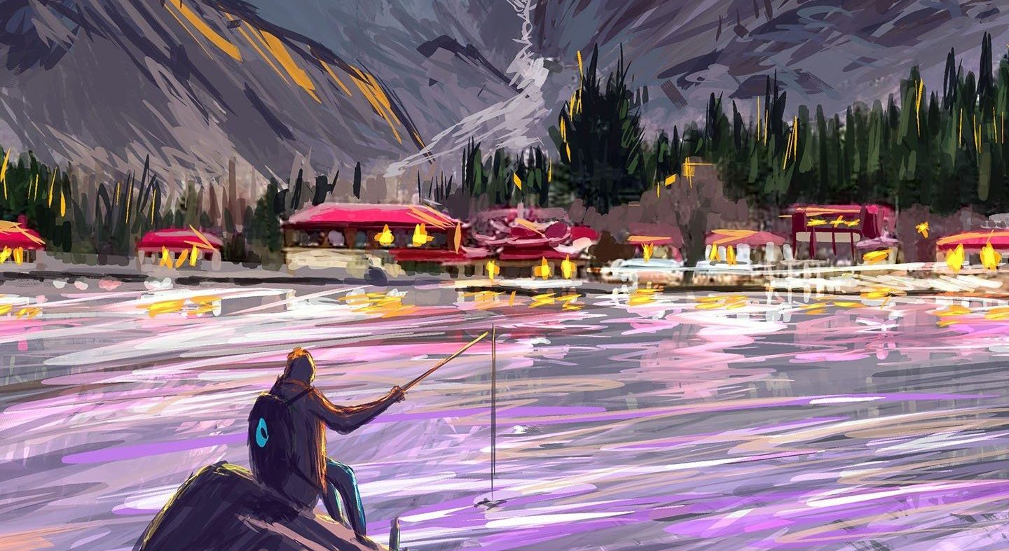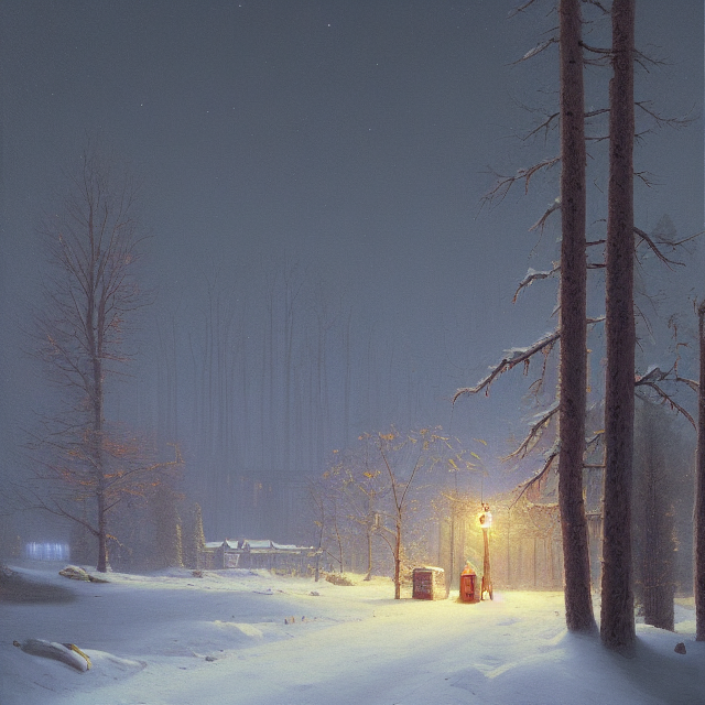 The gateway into winter, cottagecore, by Simon Stälenhag and Albert Bierstadt, oil on canvas