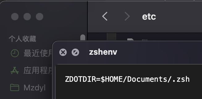 以我个人为例 ZDOTDIR=$HOME/Documents/.zsh